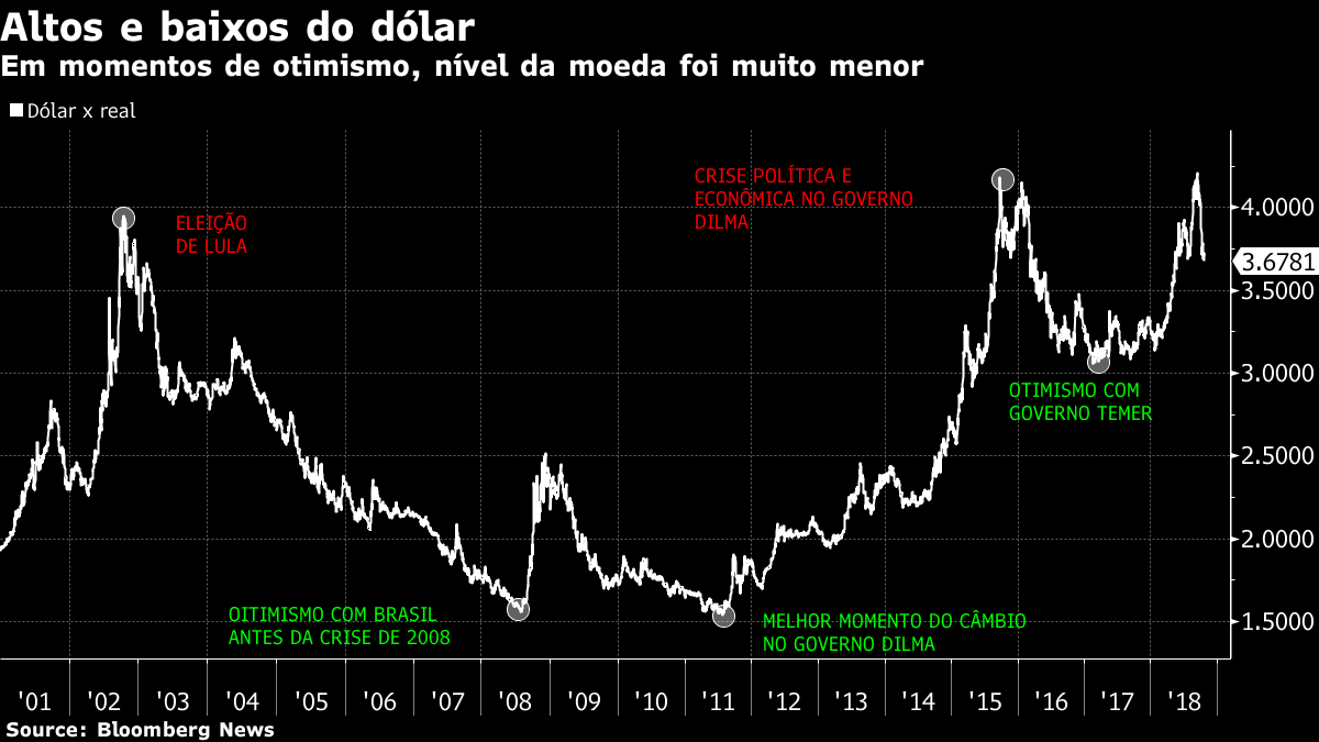 O mercado financeiro espera queda adicional do dólar se a eleição do próximo domingo confirmar a vitória de Jair Bolsonaro (PSL) por larga vantagem, impondo ao PT a primeira derrota em uma eleição presidencial desde 1998. A eventual formação de uma equipe econômica de peso, combinada às reformas e à independência do Banco Central, poderia levar o dólar a nível abaixo de R$ 3,00, dizem analistas.