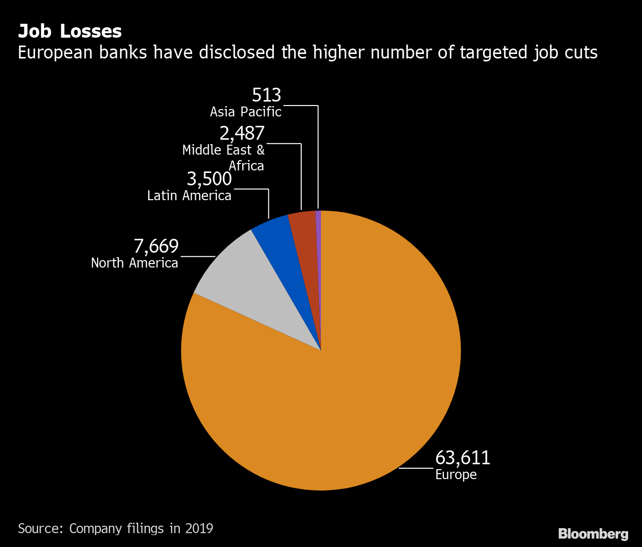 Este ano, mais de 50 instituições financeiras anunciaram planos para cortar 77.780 empregos, o maior número desde as 91.448 demissões em 2015, segundo registros de empresas e sindicatos. Os bancos na Europa, que enfrentam o ônus extra de taxas de juros negativas, representam quase 82% do total.