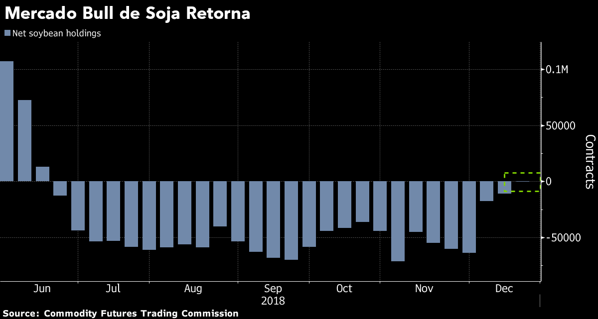 “Foi um bom começo de 2019 para a soja”, disse Charlie Sernatinger, diretor global de futuros de grãos da ED&F Man Capital Markets em Chicago, em relatório enviado por e-mail. As posições vendidas abertas foram desfeitas devido a rumores de que a China estava voltando a comprar cargas dos EUA e à previsão de condições mais secas no Brasil.