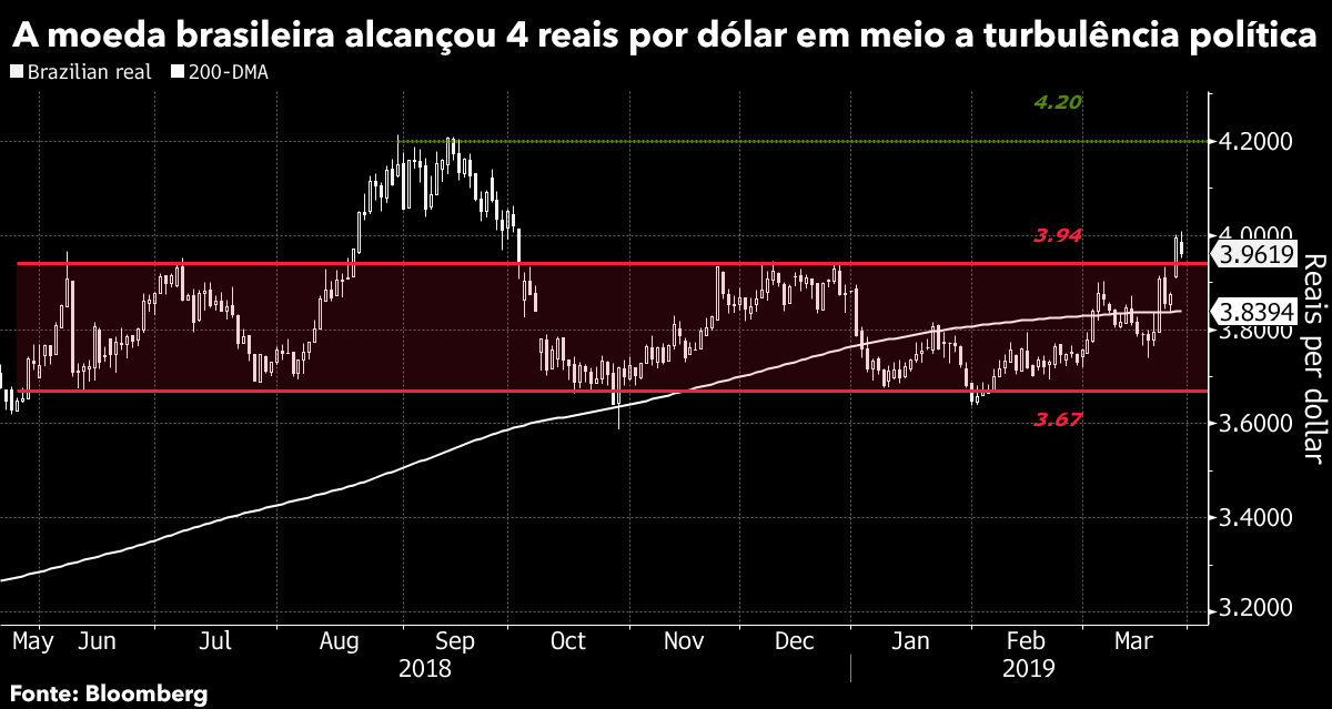 “É preciso algo que vire o jogo para o real sofrer pressão significativa”, disse ela. “Mas este não é o nosso cenário base.”A estrategista não vê motivo para o dólar estar acima da marca psicológica de R$ 4 atingida ontem, mas acha que o dólar pode testar esse nível na medida em que a turbulência política intensificar incertezas. No entanto, para o dólar permanecer acima desse patamar, o fracasso da reforma precisaria estar embutido na cotação e isso ainda não aconteceu. Na visão de Park, os investidores estão dispostos a aceitar atrasos na aprovação da reforma.