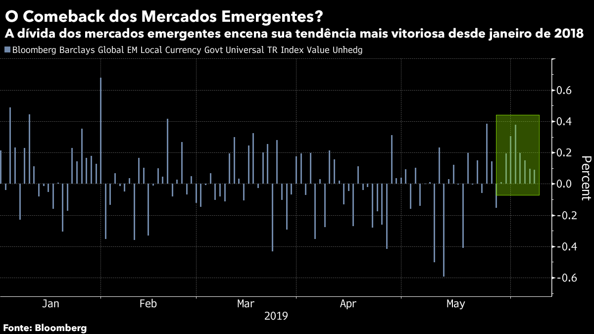 O México conseguiu evitar novas tarifas, mas a campanha de Washington para virar acordos comerciais de cabeça para baixo em todo o mundo ainda causa estragos nas economias globais. No entanto, o impacto dos imprevisíveis tuítes de Trump provavelmente será menos prejudicial para os ativos emergentes se a queda do dólar na semana passada, a mais forte em relação a uma cesta de moedas desde fevereiro de 2018, provar ser uma tendência.