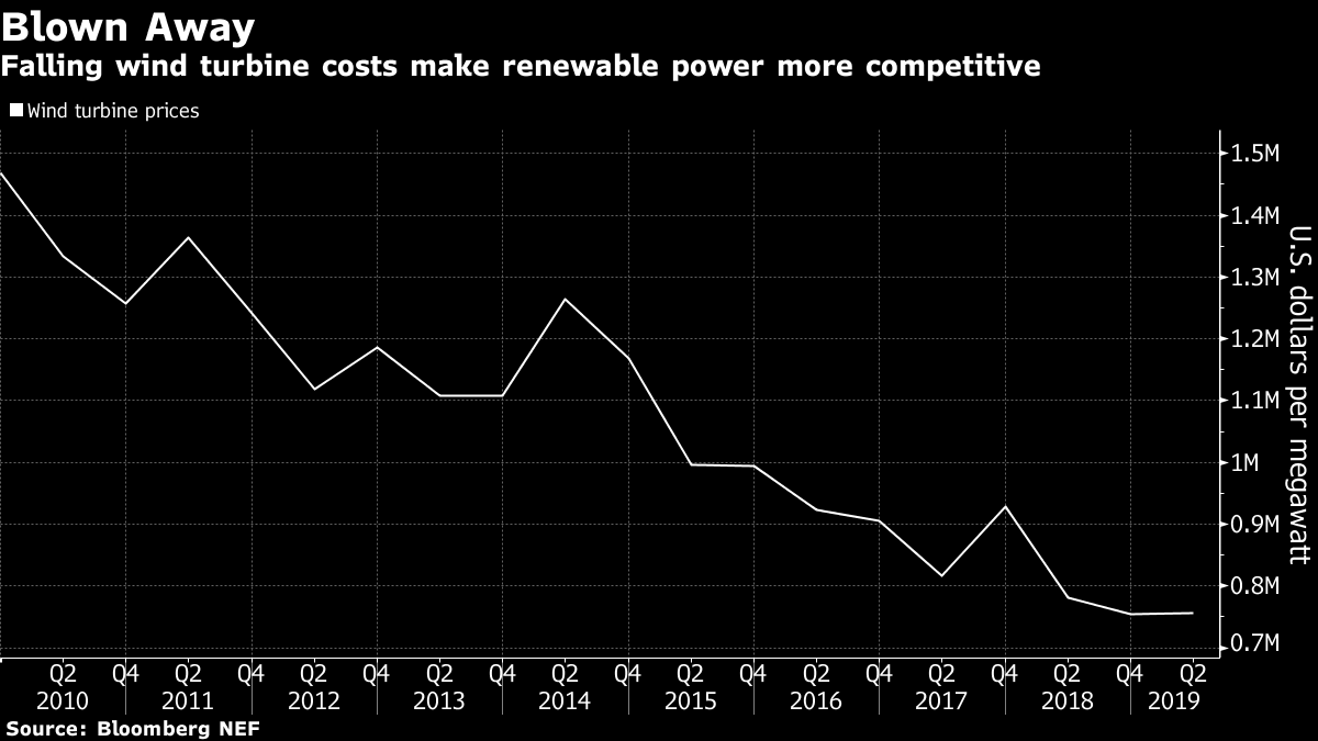 A Vestas diversificou sua base de fabricação asiática fora da China nos últimos anos com a instalação de fábricas na Índia, onde Turton espera de 5 a 10 gigawatts por ano de capacidade eólica instalada na próxima década. A transição da Índia para os leilões de tarifas fixas tornou os preços de energia renovável mais atraentes, mas também resultou em um mercado mais turbulento para os fabricantes. Alguns vencedores dos leilões prometeram preços baixos que não podem oferecer.