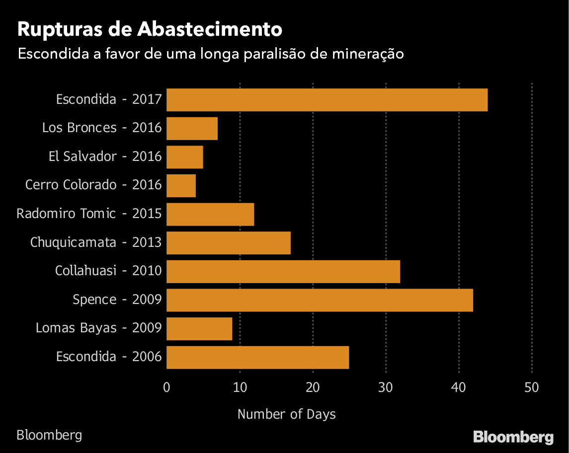 Em um ano recorde de negociações coletivas na indústria de mineração chilena, que inclui a principal mina da Codelco, El Teniente, os investidores poderiam estar subestimando o risco que as greves representam para a oferta em um momento em que as crescentes tensões comerciais estão dominando as manchetes. Em julho, os preços registraram a maior queda mensal desde o final de 2016, e os gestores de recursos elevaram a um recorde as apostas pessimistas no metal.
