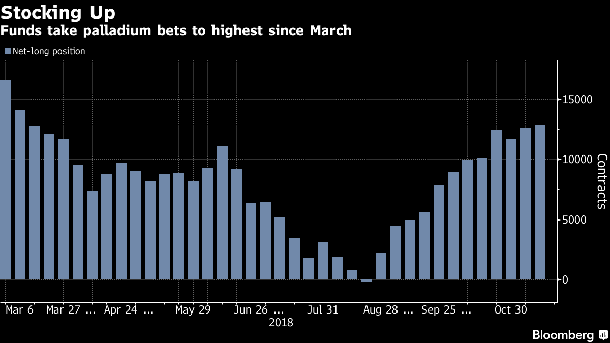 Os fundos de hedge estão ampliando suas perspectivas otimistas. No período de uma semana que terminou em 13 de novembro, os gestores de recursos ampliaram a posição comprada líquida, que é a diferença entre as apostas no aumento e na queda do preço, pela segunda semana consecutiva, para 12.837 futuros e opções, segundo dados da Comissão de Negociação de Futuros de Commodities (CFTC, na sigla em inglês) publicados na sexta-feira. É o maior patamar desde 6 de março.