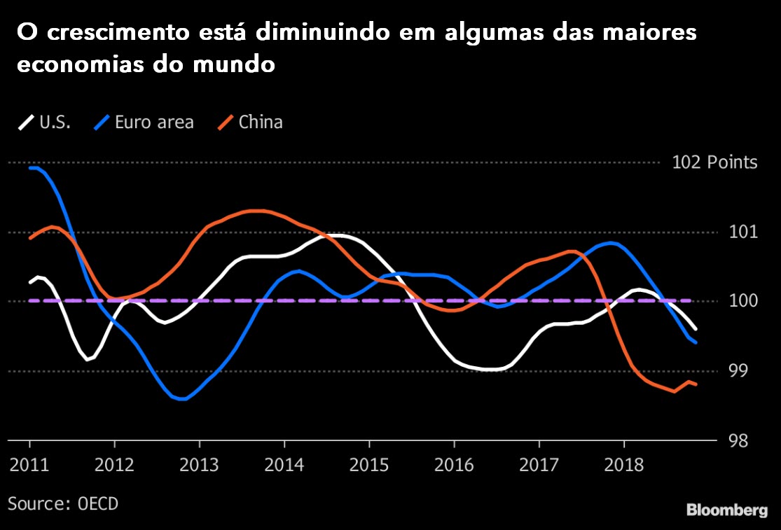 Apenas duas semanas depois do começo de 2019, o indicador econômico da OCDE chega após uma série de números que insinuam que o crescimento neste ano poderia ser ainda mais lento do que se projeta atualmente. Para a Bloomberg Economics, os dados indicam “uma desaceleração, não um colapso”, mas, de qualquer modo, a perda de impulso é “notável”.