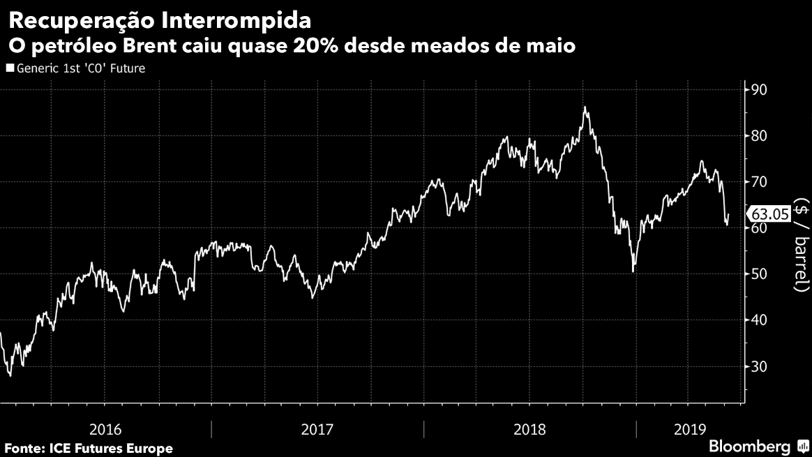 O mercado de petróleo, mostrando características típicas das ações, já começa a refletir um potencial excedente em 2020. Apesar de um mercado físico apertado devido à crise desencadeada pela contaminação do gasoduto da Rússia e sanções dos Estados Unidos contra o Irã e a Venezuela, as cotações petróleo caíram para menos de US$ 60 na semana passada, uma queda de mais de 20% em relação aos US$ 75 no fim de abril.