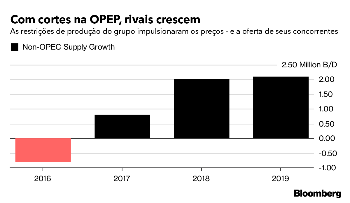 Opep prevê maior crescimento de oferta rival em 5 anos em 2019