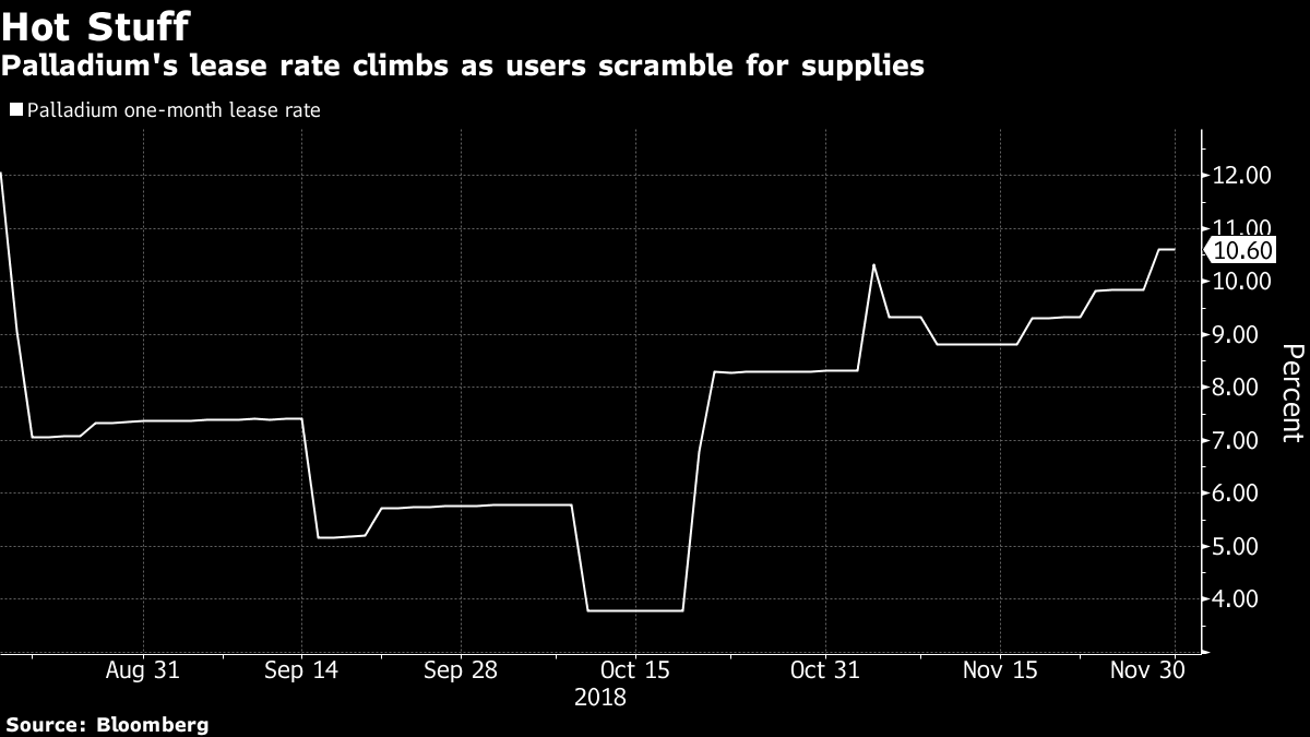 O paládio, usado como autocatalisador em veículos movidos a gasolina, atingiu um patamar recorde pela quarta vez neste mês em um momento em que os usuários do metal precioso competem por uma oferta limitada. Os investidores continuam retirando a commodity dos fundos negociados em bolsa, levando os ativos ao menor nível em quase uma década. O custo de empréstimo da matéria-prima por um mês subiu para mais do que o triplo do rendimento dos títulos de 10 anos do Tesouro dos EUA.