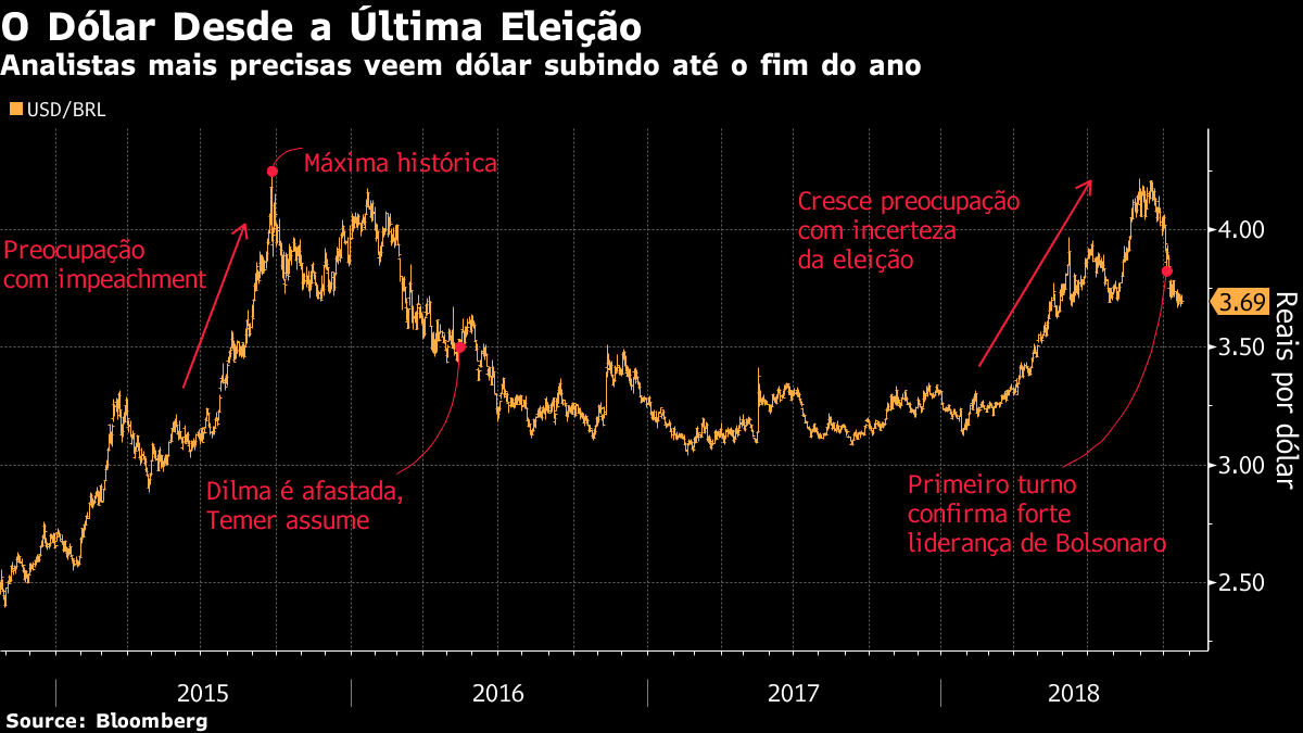 Com as pesquisas indicando uma vitória fácil para o deputado de extrema-direita Jair Bolsonaro, as duas estrategistas de câmbio dizem que a maior parte do otimismo já está precificada, uma vez que os investidores acreditam que o militar da reserva irá consertar as finanças públicas do país com uma série de medidas fiscais. No entanto, reformular o sistema previdenciário, elevar impostos e privatizar empresas estatais são medidas difíceis e impopulares, que provavelmente enfrentarão considerável resistência no Congresso. E uma vez que o mercado reconhecer que o caminho será difícil pela frente, há muito espaço para que o otimismo diminua e o real enfraqueça.