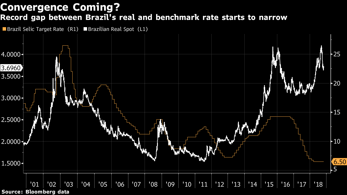 Enquanto os países em desenvolvimento frequentemente elevam as taxas para defender moedas durante crises, no atual cenário do Brasil a nova administração pode reduzir a diferença entre a taxa de câmbio e o juro de referência, que aumentou durante a recessão de 2015 a 2016 e ainda mais durante a imprevisível campanha presidencial deste ano.