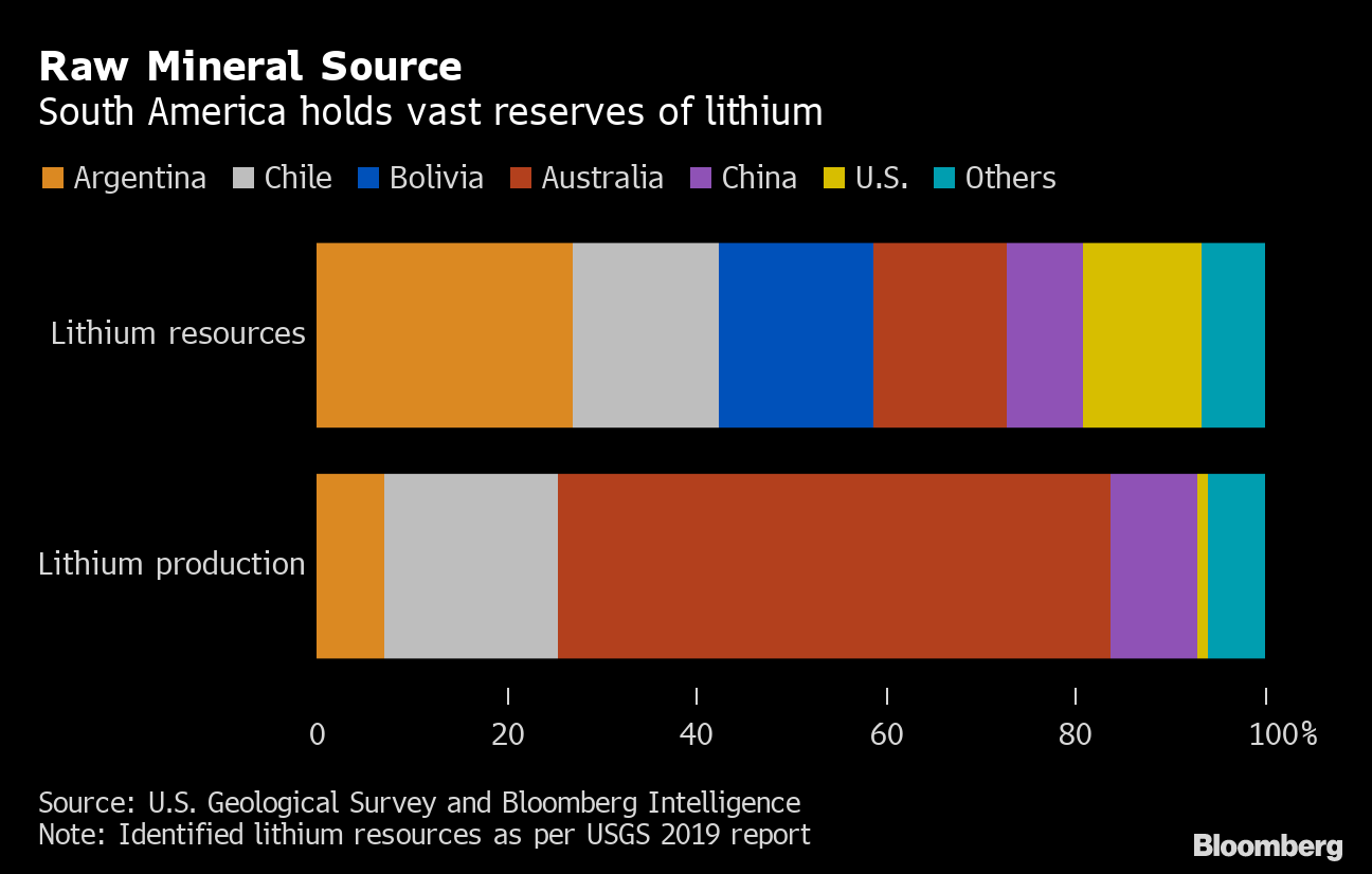 A América do Sul controla cerca de 70% das reservas mundiais de lítio, o metal usado em baterias recarregáveis de celulares e veículos elétricos, mas não dispõe da infraestrutura necessária para que o setor se desenvolva.