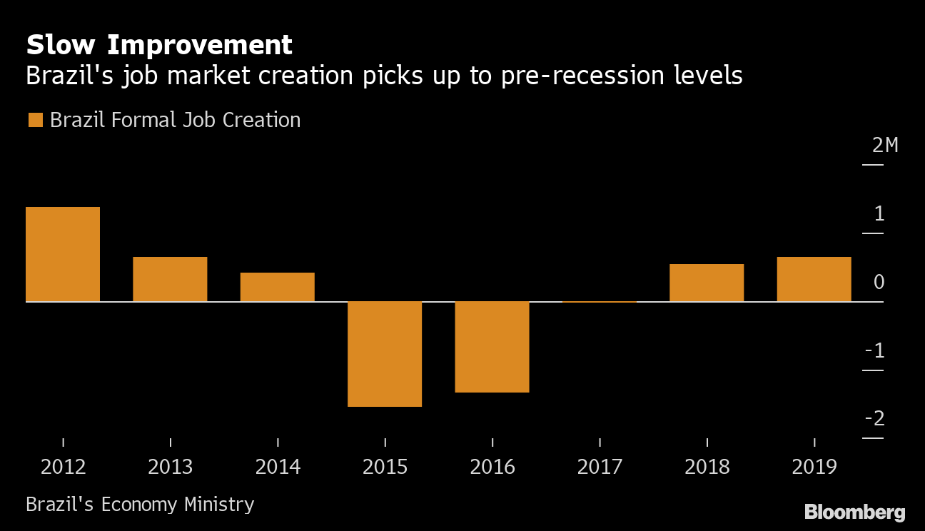 O mercado de trabalho brasileiro deve levar mais tempo para se recuperar, mostrando o desafio para o governo Jair Bolsonaro reverter anos de eliminação de empregos e retomada anêmica.