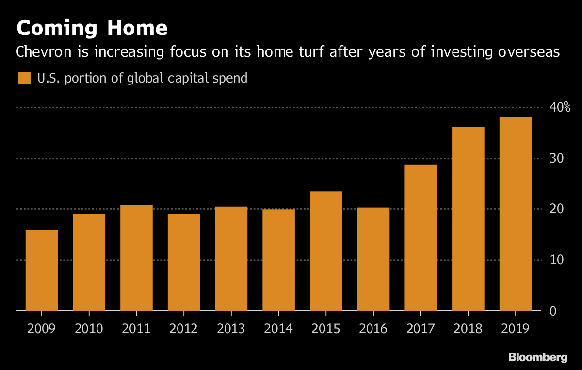 A ConocoPhillips informou na segunda-feira que injetará metade do orçamento para 2019 na parte continental dos EUA e a Chevron está investindo a maior quantia em uma década no país, sendo US$ 3,6 bilhões apenas na bacia de Permian. A Anadarko Petroleum e a Hess, ambas operadoras globais, planejam ampliar em mais de 40 por cento os investimentos em seus ativos americanos.